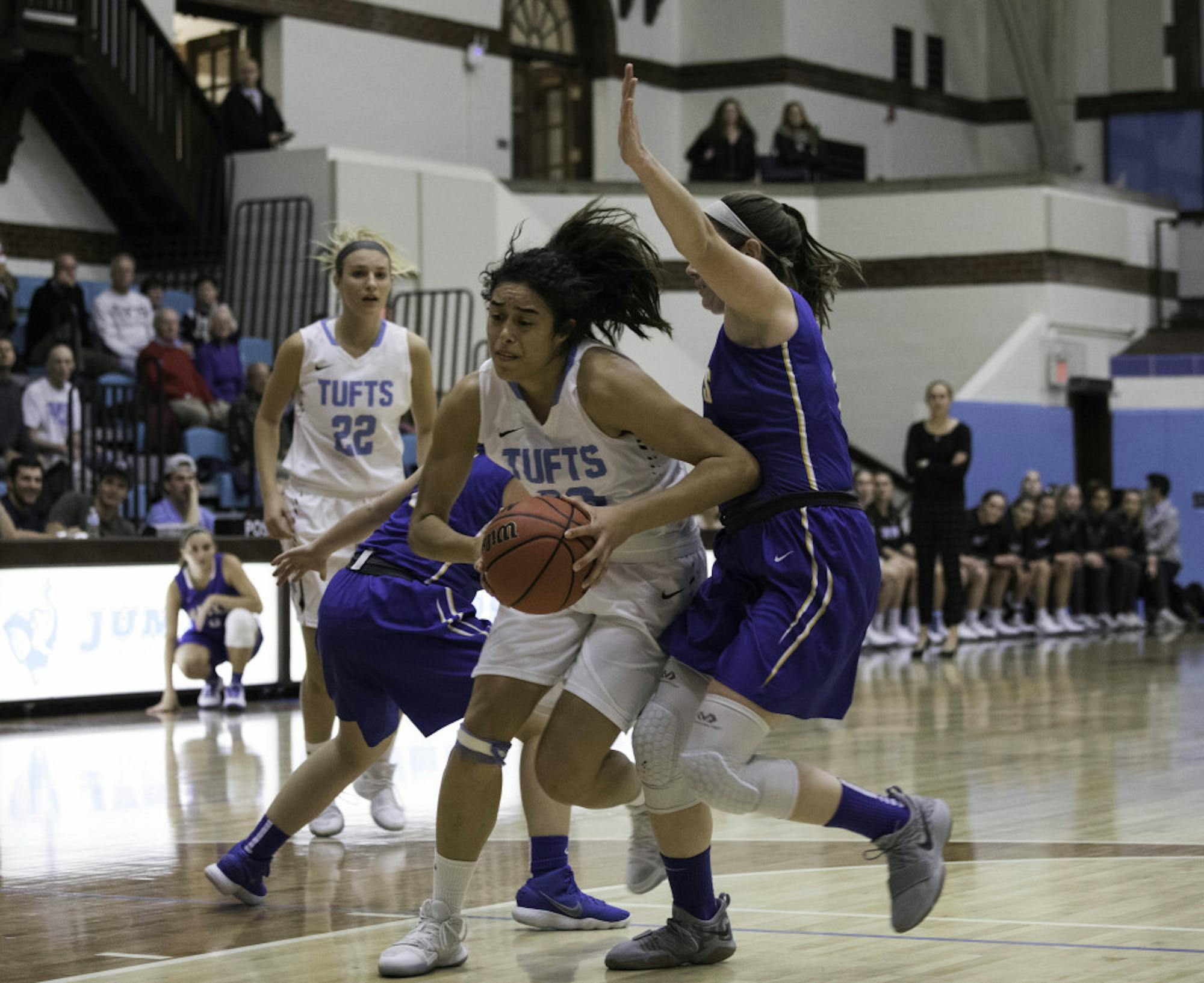 In Saturday’s tournament final, the Jumbos humbled the Pride in a 81–41 win for the Brown and Blue. Tufts scored 21 of the game’s first 25 points, and all five starters got on the scoresheet in a first quarter that ended with 28–9 advantage for the women from Medford.
