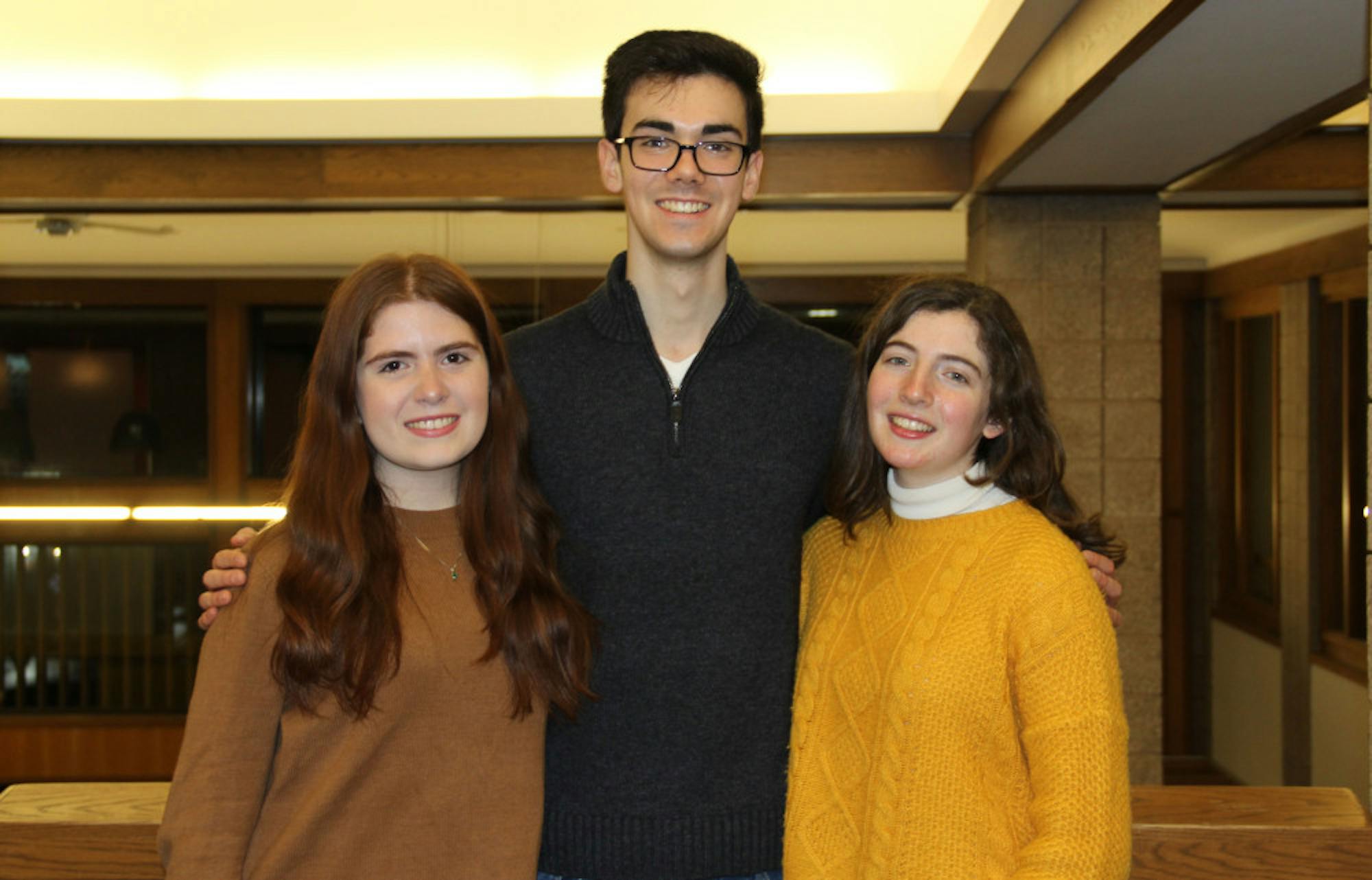TCU special election winners, Valerie Infante, Max Miller and Jenna Kaplan are pictured in Mayer Campus Center on Feb. 6.